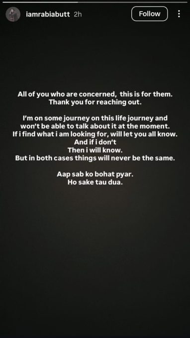 Rabia said that she is on a journey in life and right now she cannot talk about it.