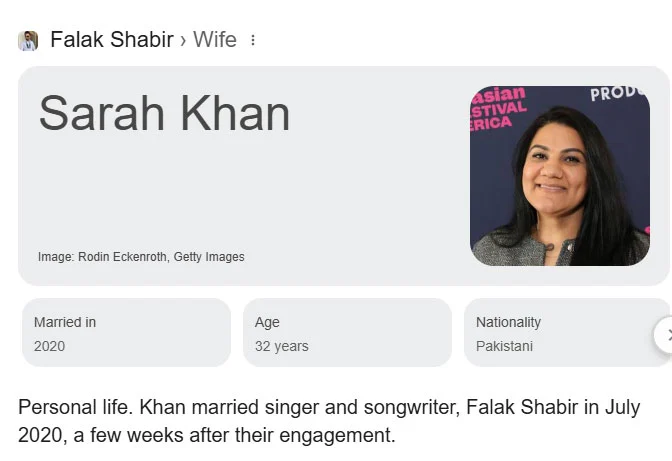 If you search for Falak Shabir’s wife on Google, the results show two different women as the singer’s spouse.