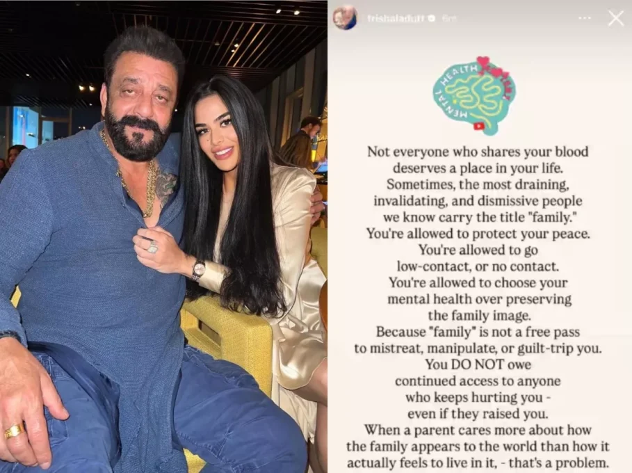 Sanjay Dutt’s elder daughter further said that the word family does not give anyone the right to mistreat you. You do not need to give access to people who are constantly harming you or hurting you even if they raised you.