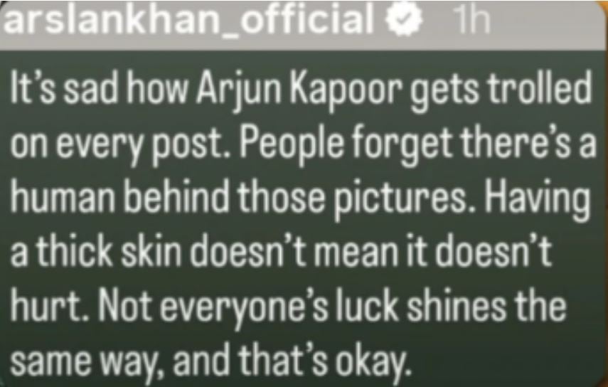 In his Instagram story, Arsalan wrote that it hurts him to see negative comments on every post of Arjun Kapoor.