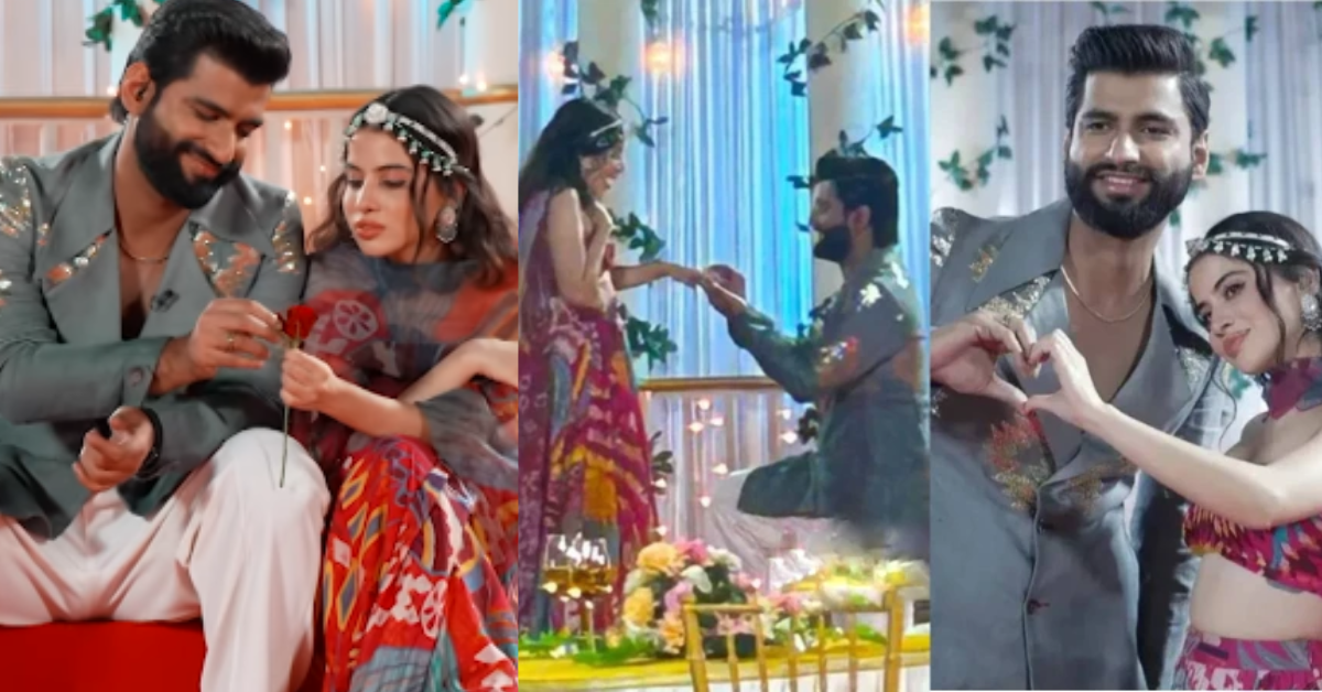 According to Indian media, a blurry picture of Urfi, known for her bold fashion style, is circulating on social media in which a boy can be seen sitting on the model’s knees and putting on a ring.