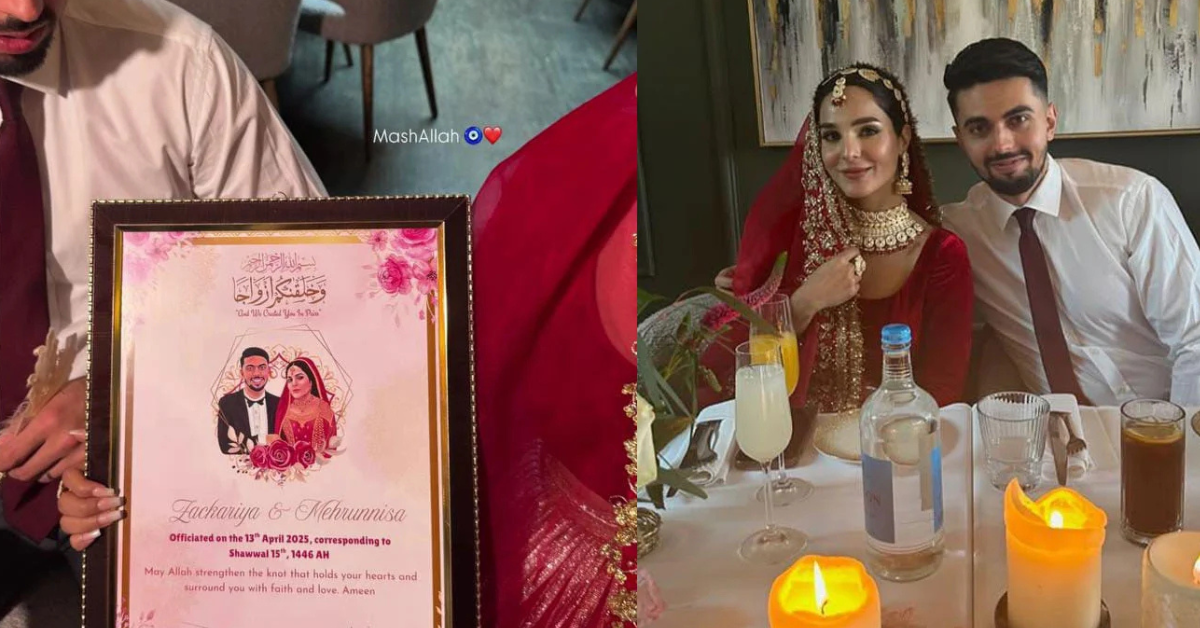 The pictures and videos show that the small nikah ceremony took place recently, and her husband’s name is Zakariya.