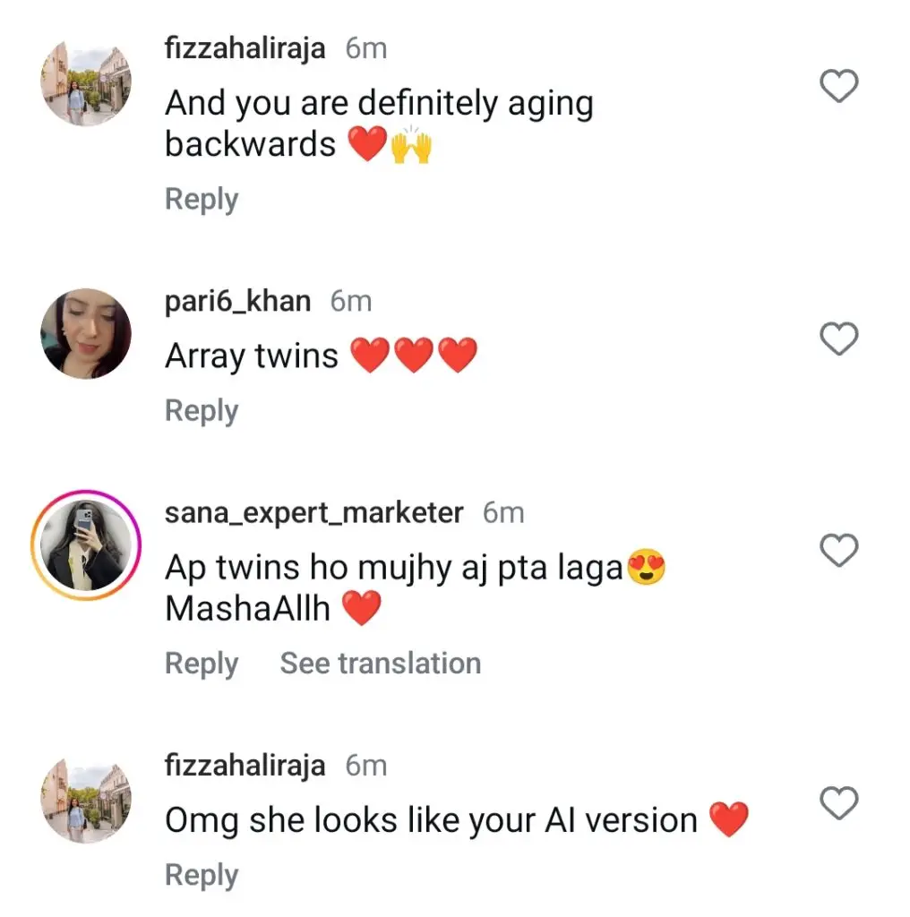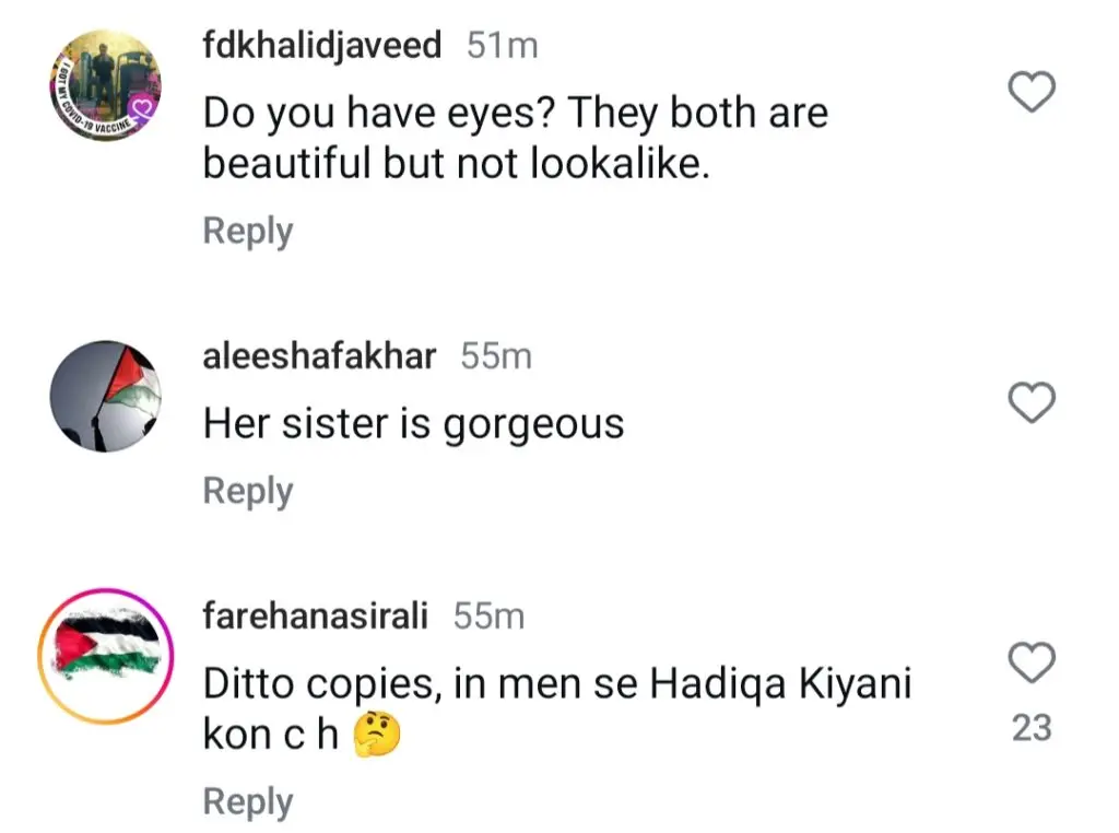 Recently, Hadiqa Kiani surprised everyone by sharing heartfelt birthday wishes for her sister, along with some beautiful pictures. Her sister is just as stunning as Hadiqa, and the two share an uncanny resemblance, almost looking like twins. Their charming bond and striking looks have captured the attention of fans, who are showering them with love and admiration. Here are some lovely pictures of Hadiqa Kiani with her gorgeous sister.