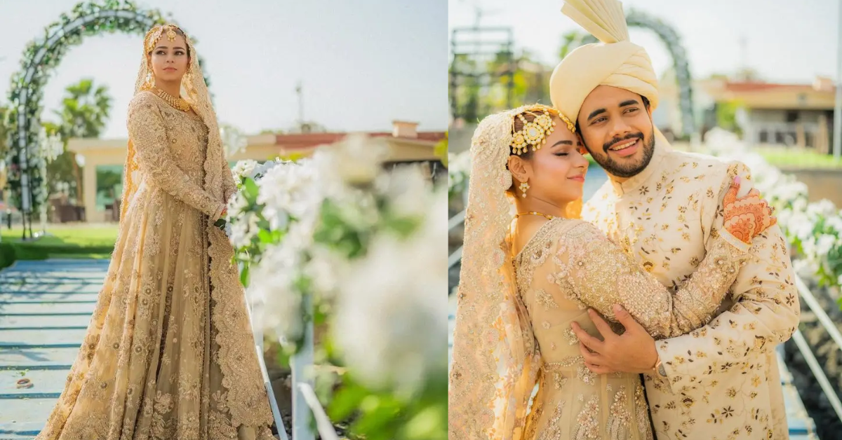 Hareem Sohail wore an ivory gold lehenga for her wedding day. She and her husband were dressed in complementary attire. She looked ethereal, and the couple looked adorable. Here are a few highlights from Hareem Sohail’s Nkkah event. Check it out: