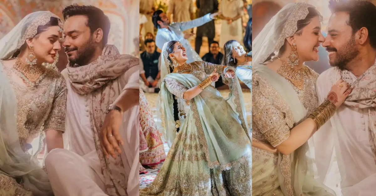 Kubra Khan and Gohar Rasheed’s musical Shehndi celebration has been gaining popularity online. The two renowned actors married in a quiet and beautiful ceremony in Makkah, followed by a series of star-studded parties. The pair has been actively sharing details of their wedding journey, with images and videos from each event attracting the public’s attention.