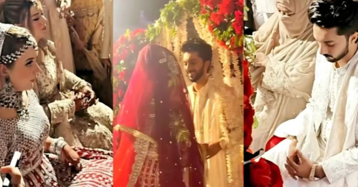 Pictures and videos from last night’s grand nikkah event are going viral on social media. On this special day, Rabeeca wore a red and golden lehenga choli designed by Kashees. It was beautifully decorated with shining silver sequins and fine cut-dana work.