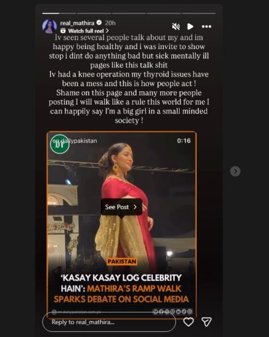 Mathira said that she has undergone knee surgery and her thyroid condition has also been quite bad but despite this, people show such behavior which is regrettable.
