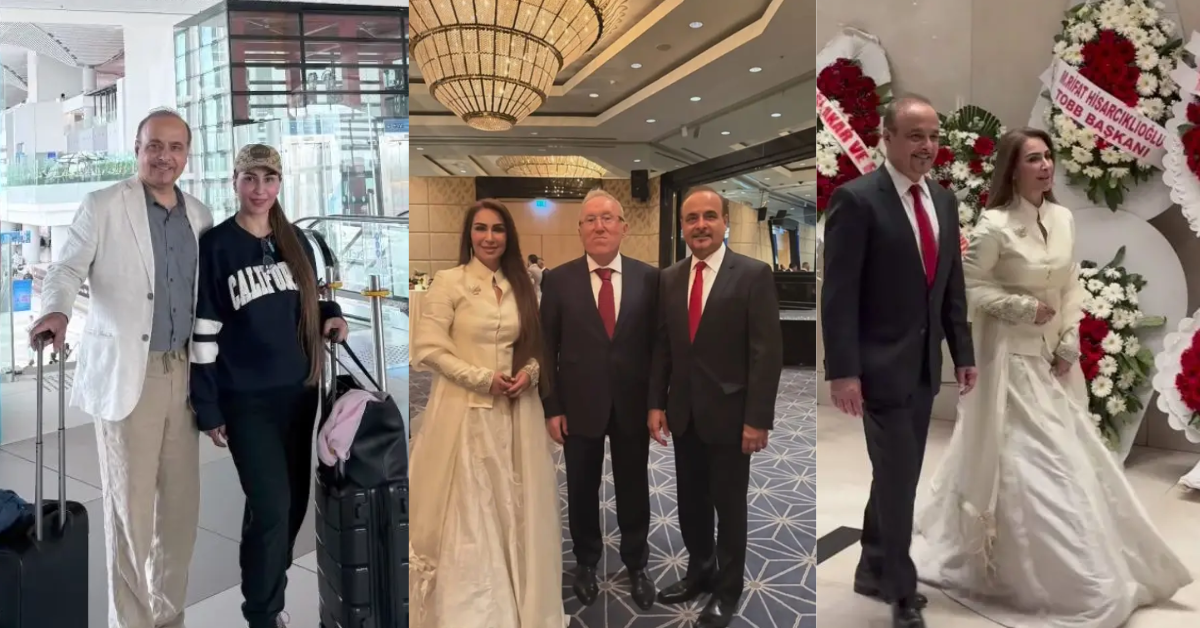 Reema wore a stylish white dress that mixed both Eastern and Western fashion. Her husband, Dr. Tariq Shahab, looked elegant in a classic black suit. Reema shared a message saying they felt honored to be invited by Mrs. İnci and Mr. Hasan Murat Mercan (the Ambassador). She also mentioned that many important people were at the event, including Turkey’s Vice President Cevdet Yılmaz.