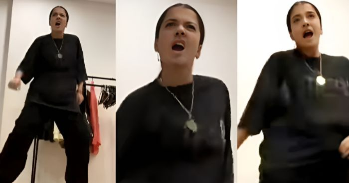 Wearing a black shirt and trousers with a locket chain around her neck, she looked full of energy, and her powerful facial expressions left viewers surprised.