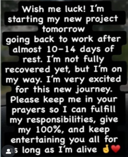 However, she also made it clear that she is not fully recovered yet, but her health is improving day by day.