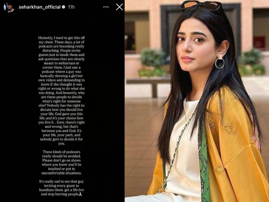 In her Instagram story, Sahar Khan has strongly criticized the growing number of podcasts and shows in recent days that embarrass people, especially women, in the name of content.