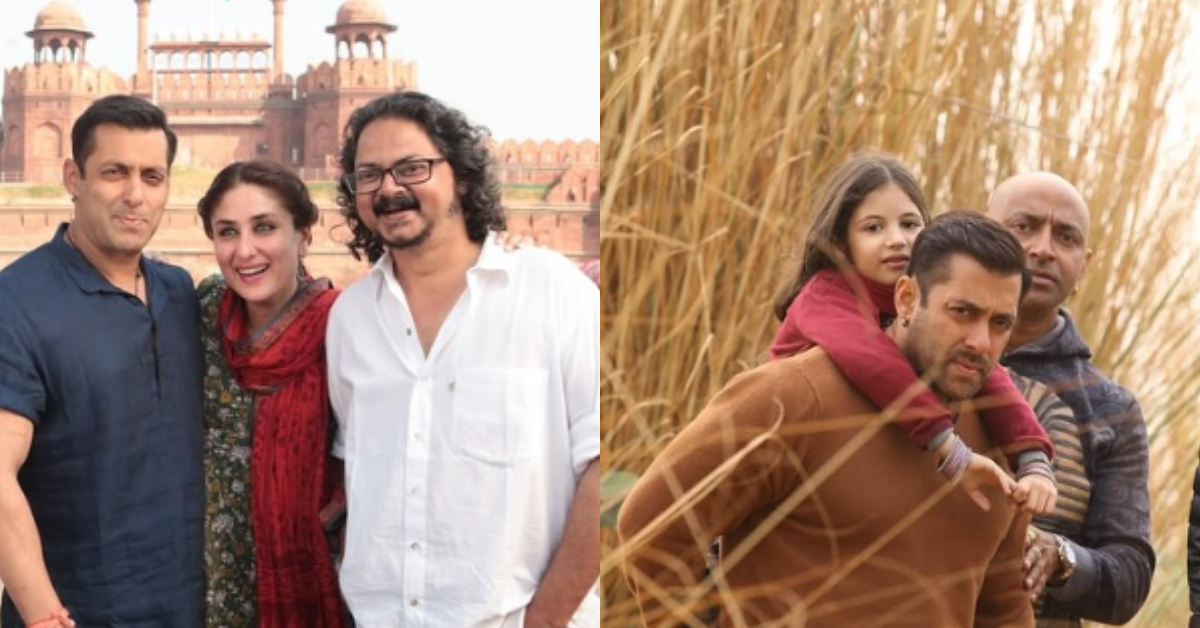 In the photos, Salman can be seen carrying young actress Harshaali Malhotra on his shoulders, standing with Kabir Khan and Kareena Kapoor Khan outside the Red Fort in Delhi, and talking to the director during a scene.