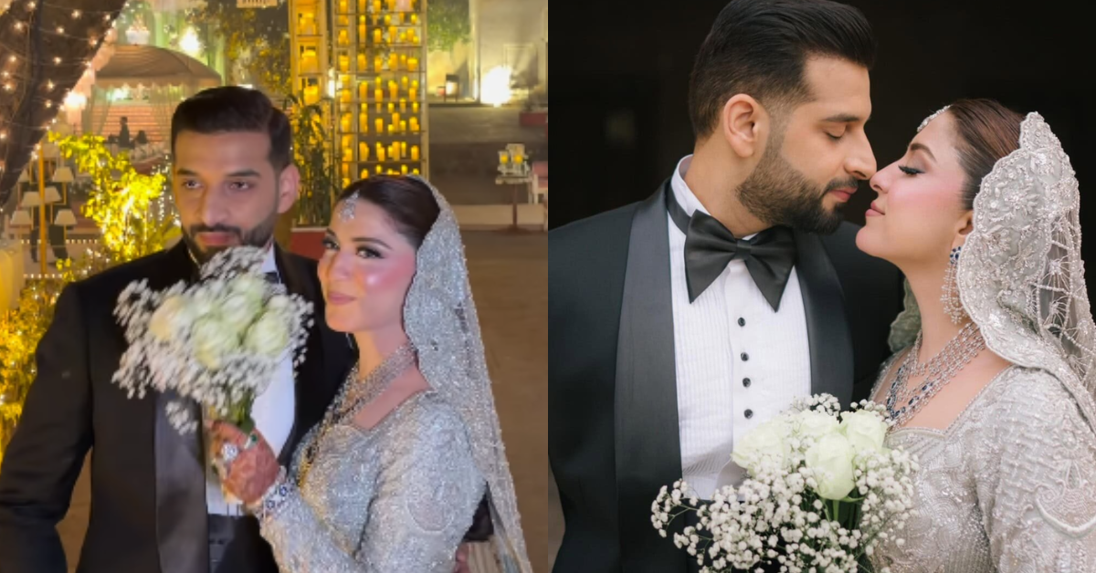 In this video, Hina Niazi is seen posing with her husband in a beautiful silver dress. At one point, she holds a bouquet in front of her face in a pose as if she is kissing her husband.