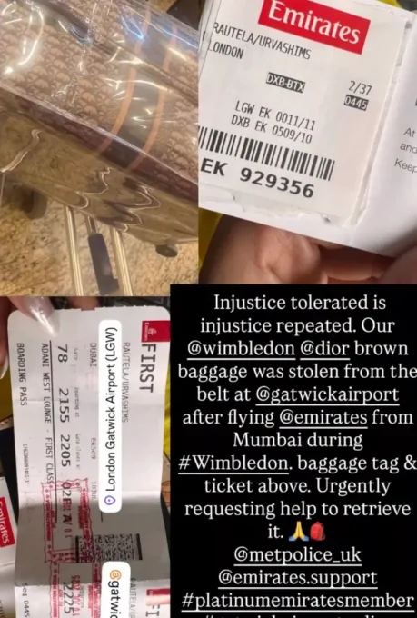 She also shared the details of her bag and flight ticket on her Instagram account and requested help from the concerned authorities.