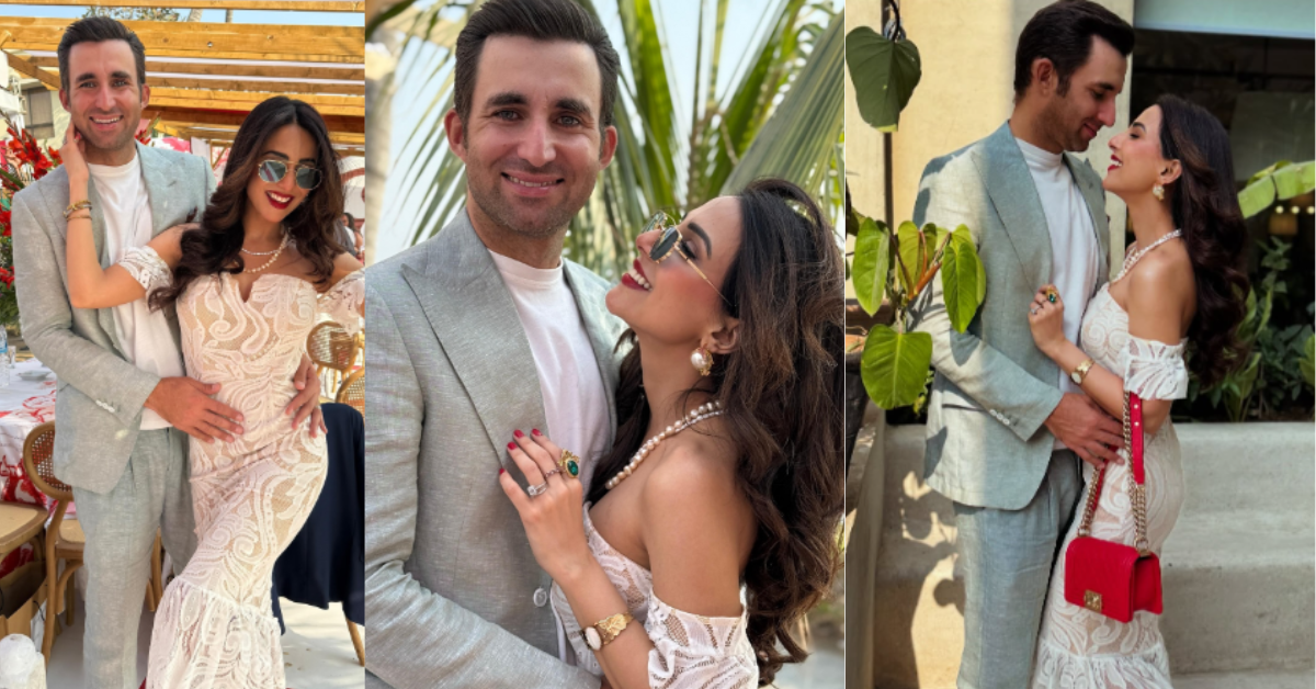 Ushna Shah has once again grabbed hearts, this time with her husband Hamza Amin, as their PDA-filled photos go viral on social media. The couple was caught in a series of amorous photos, radiating happiness and evident chemistry.