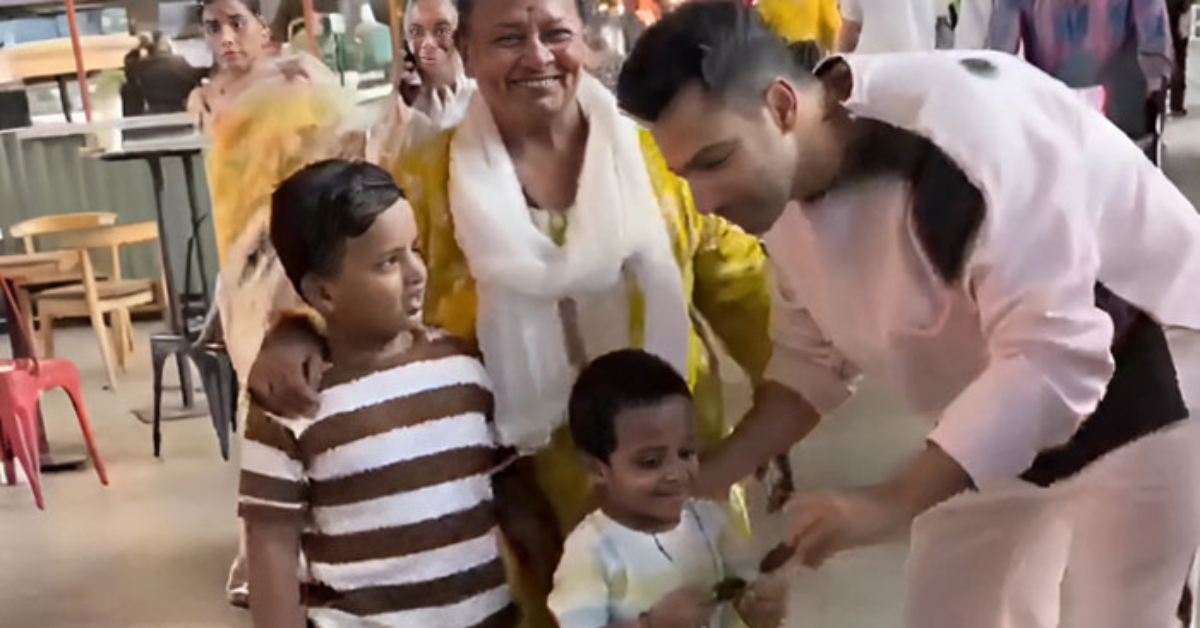 One of the little boys reached out his hand, asking Varun for his sunglasses. Varun immediately took off his glasses and gave them to the child.
