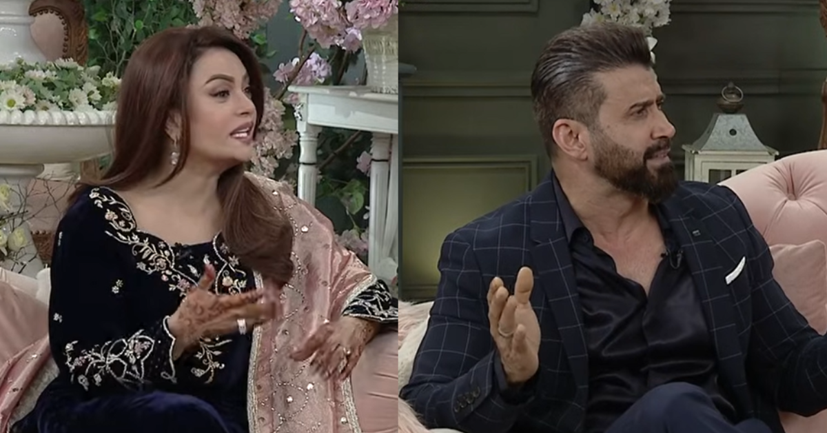 Sadia Imam participated in the ARY News morning show with her husband. While discussing the wearing of sarees, Sadia Imam said that there is a way to wear shalwar kameez too. If you wear a waistcoat or a shawl with it, it becomes the best (formal) dress.