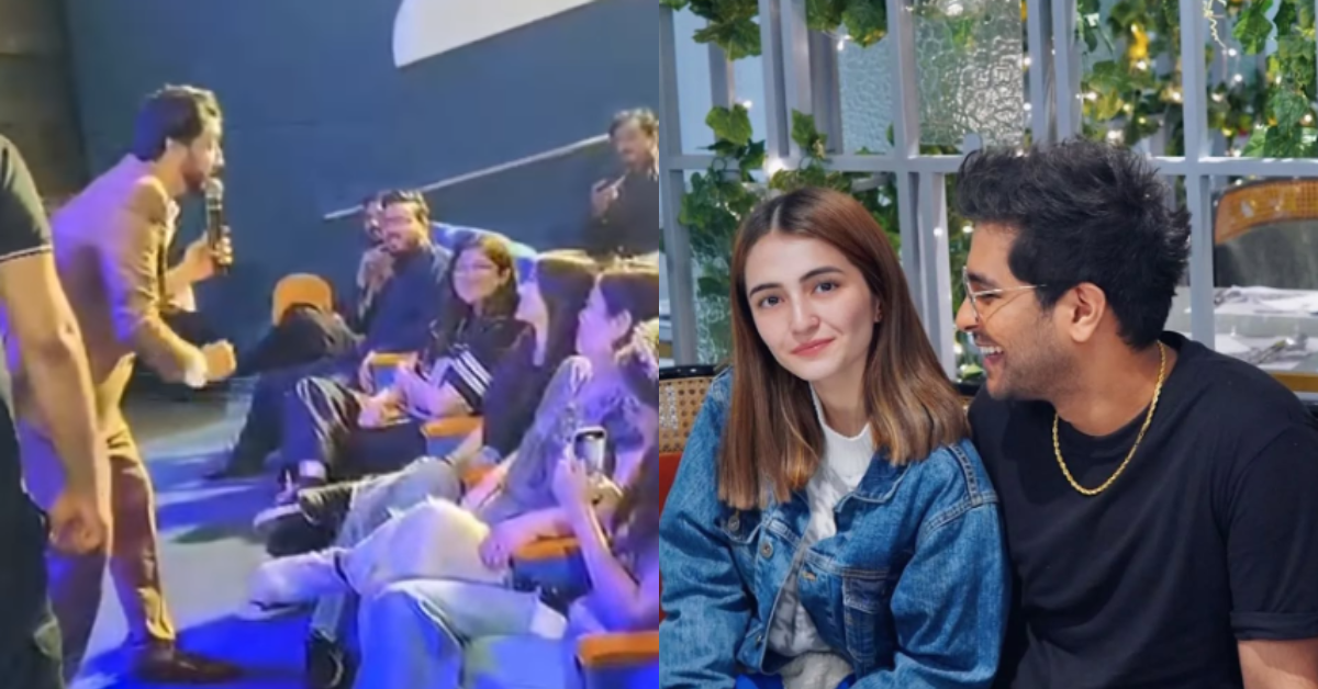 In the viral video on social media, Meerub Ali is seen at an event where singer An Ali Khan comes to her with a mic and asks her to sing a song.