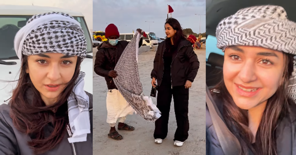 Yumna Zaidi is currently vacationing in Qatar, a beautiful Middle Eastern country. She shared an Instagram video from her trip to a picturesque desert in Qatar. The actress embraced a gorgeous traditional Arabic look by wearing a keffiyeh. Here we have gathered the pictures from the desert trip: